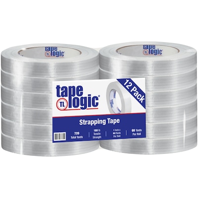 Tape Logic Filament tape measures 1" x 60 yds and is suitable for steel as well as poly strapping applications. Tape has reinforced glass filaments that provide superior strength, sold as 12 rolls per pack.