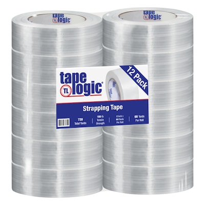 Tape Logic Filament tape measures 2" x 60 yds and is suitable for steel as well as poly strapping applications. Tape has reinforced glass filaments that provide superior strength, sold as 12 rolls per pack.