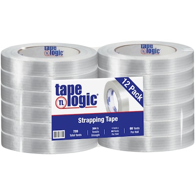 Tape Logic #1500 Filament tape is used for palletizing, unitizing and bundling heavier products. General-purpose tape measures 1" x 60 yds and is reinforced with glass for superior strength, sold as 12 per case.