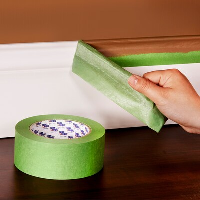 2" x 60 yds. green painters masking tape stop paint lines from bleeding used for trim, cured painted walls, woodwork, metal, glass and vinyl.
