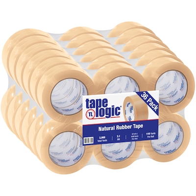 2" x 110 yds. Clear Tape Logic® #53 PVC Natural Rubber Tape. Super strong Natural Rubber Carton Sealing Tape. Natural Rubber Carton Sealing Tape provides the most consistent reliable box closure and the most aggressive adhesive of any pressure sensitive tape. Natural Rubber quickly penetrates and grips corrugated saving "rub down" time. Moisture resistant tape tolerates humid and damp conditions. Natural Rubber Tape has the largest application temperature range 0 degree - 150 degree F. PVC film backing provides lower stretch and maximum tear and puncture resistance.