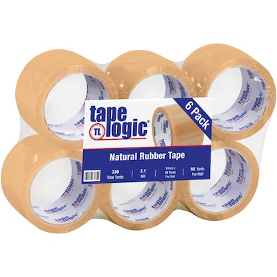 3" x 55 yds. Clear (6 Pack) Tape Logic® #53 PVC Natural Rubber Tape. Super strong Natural Rubber Carton Sealing Tape. Natural Rubber Carton Sealing Tape provides the most consistent reliable box closure and the most aggressive adhesive of any pressure sensitive tape. Natural Rubber quickly penetrates and grips corrugated saving "rub down" time. Moisture resistant tape tolerates humid and damp conditions. Natural Rubber Tape has the largest application temperature range 0 degree - 150 degree F. PVC film backing provides lower stretch and maximum tear and puncture resistance.