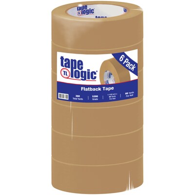 1 1/2" x 60 yds. Kraft (6 Pack) Tape Logic® #5300 Flatback Tape. Aggressive adhesive yet light weight makes this tape ideal for carton sealing applications providing cost savings in shipping. Stronger than masking tape. Easy application - just tear and apply by hand. No water or dispensers needed. Write directly on tape. Seals securely under a wide range of temperature and humidity conditions. Brown paper tape.