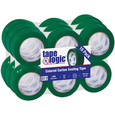 2" x 110 yds. Green (18 Pack) Tape Logic Carton Sealing Tape. Color code shipments or products! For example: blue for "UPS 2nd Day Air" or red for "Hot" shipments. Pressure sensitive polypropylene tape with acrylic adhesive.
