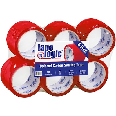 Tape Logic Colored Carton Sealing Heavy Duty Packing Tape, 3" x 55 yds., Red, 6/Carton (T90522R6PK)