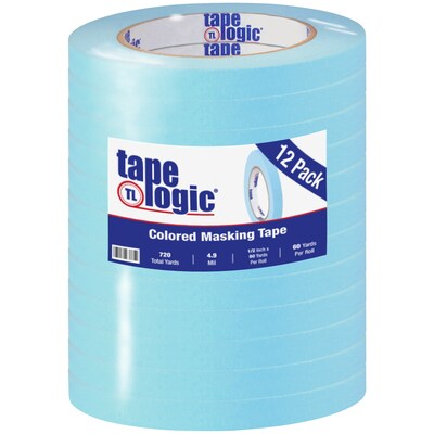 1/2" x 60 yds. Light Blue (12 Pack) Tape Logic® Masking Tape. Use Colored Masking Tape to color code shipments or for inventory identification. Designed for medium temperature applications. Stain and solvent resistant.