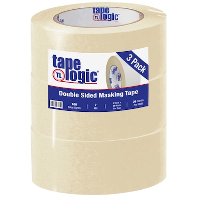 2" x 36 yds. (3 Pack) Tape Logic® Double Sided Masking Tape. Great for golf club grips and splicing paper, foil, film and fabric. Crepe paper tape with a double coated, rubber, pressure sensitive adhesive. Durable and hand-tearable. Service Temperature 50 - 225 degrees F. Apply with a Double-Sided Desk Top Dispenser stock number TDDC926.