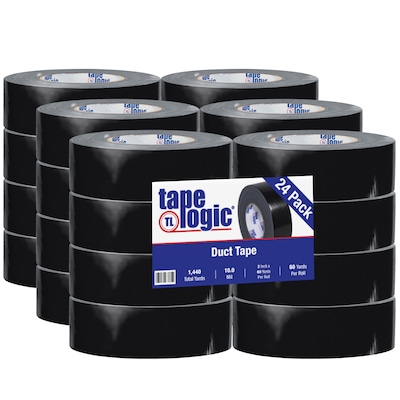 Tape Logic™ Industrial cloth duct tape in black color measures 2" x 60 yds and offers 18 percent elongation at break. Tape is designed to use in wrapping or sealing applications and sold as 24 per case.
