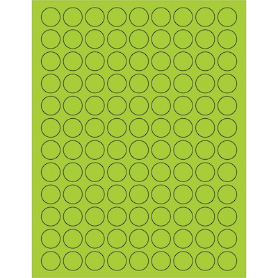 3/4" Fluorescent Green Circle Laser Labels. Use to create your own product or mailing labels. Labels work with both laser and ink jet printers.