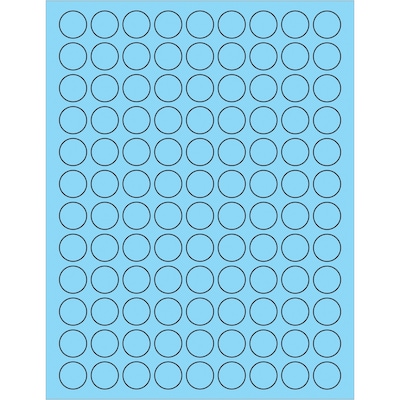 3/4" Fluorescent Pastel Blue Circle Laser Labels. Use to create your own product or mailing labels. Labels work with both laser and ink jet printers.