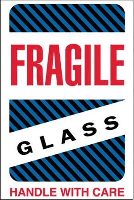 Tape Logic™ "Fragile - Glass - Handle With Care" Shipping label measuring 4" x 6" attracts attention by boldly displaying instructions as well as warnings. Label is pressure sensitive for firm adhesion, sold as 500 per roll.