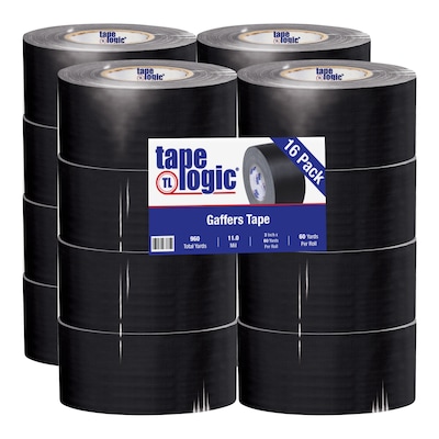 Mark the positions of stage props with this Tape Logic industrial gaffer tape. Cloth construction lets users tear off pieces crosswise or lengthwise without tools, and its black non-reflective surface makes it unobtrusive in low-light conditions indoors or outdoors. It leaves no residue when removed. Each 3-inch-wide Tape Logic industrial gaffer tape roll is 60 yards long and comes in a case of 16 for widespread use in theatrical or warehouse settings.