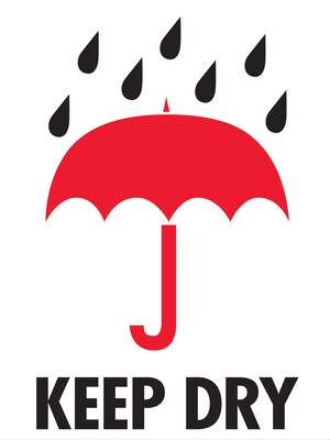 Tape Logic™ "Keep Dry" Shipping label measuring 3" x 4" attracts attention by boldly displaying instructions as well as warnings. Label is pressure sensitive for firm adhesion, sold as 500 per roll.