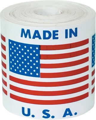 Tape Logic Labels, "Made in U.S.A., 2" x 2", Red/White/Blue, 500/Roll (USA304)