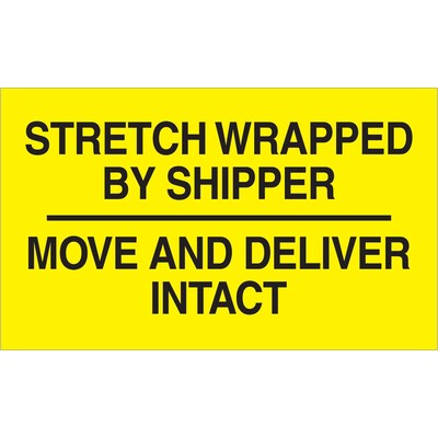 Tape Logic® Labels, "Stretch Wrapped By Shipper", 3 x 5, Black/Yellow, 500/Roll (DL3172)