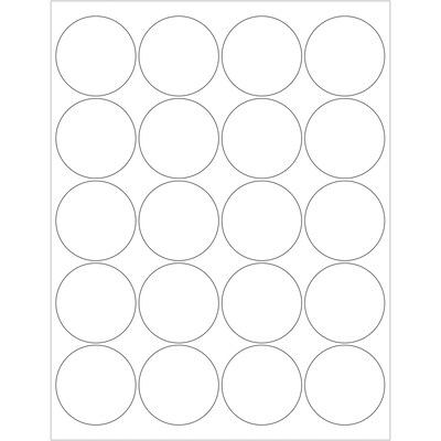 2" White Circle Laser Labels. Use to create your own product or mailing labels. Labels work with both Laser and ink jet printers. Permanent adhesive. Labels stick to a variety of smooth surfaces including paper, corrugated, plastic, wood, glass and metal.