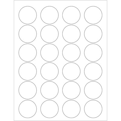 1.625" White Circle Laser Labels. Use to create your own product or mailing labels. Labels work with both Laser and ink jet printers. Permanent adhesive. Labels stick to a variety of smooth surfaces including paper, corrugated, plastic, wood, glass and metal.
