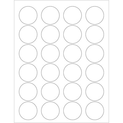 Use to create your own product or mailing labels. 1.625" White Circle Laser Labels. Use to create your own product or mailing labels. Labels work with both Laser and ink jet printers. Permanent adhesive. Labels stick to a variety of smooth surfaces including paper, corrugated, plastic, wood, glass and metal.
