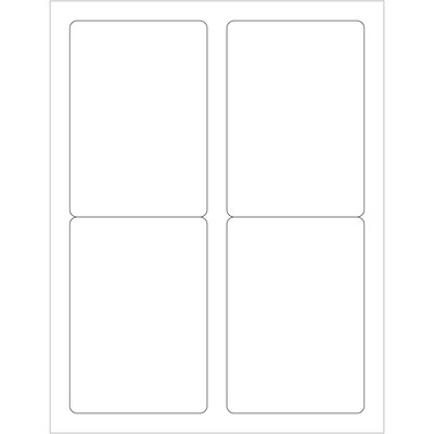 3 1/2" x 5" White Rectangle Laser Labels. Use to create your own product or mailing labels. Labels work with both Laser and ink jet printers. Permanent adhesive. Labels stick to a variety of smooth surfaces including paper, corrugated, plastic, wood, glass and metal.