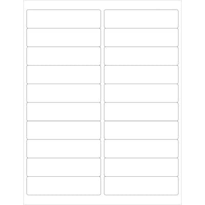 Use to create your own product or mailing labels. 4" x 1" White Rectangle Laser Labels. Use to create your own product or mailing labels. Labels work with both Laser and ink jet printers. Permanent adhesive. Labels stick to a variety of smooth surfaces including paper, corrugated, plastic, wood, glass and metal.