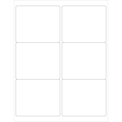4" x 3 1/3" White Rectangle Laser Labels - Master Case. Use to create your own product or mailing labels. Labels work with both Laser and ink jet printers. Permanent adhesive. Labels stick to a variety of smooth surfaces including paper, corrugated, plastic, wood, glass and metal. Choose bulk Caseed, master cases and save!