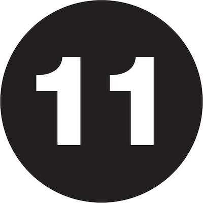 3" Circle - "11" (Black) Number Labels. Use brightly colored labels to identify shipments, inventory or shelving. Table top dispensers available stock numbers SL9506, SL9512 and SL9518. Wall Mount dispensers available stock numbers LDM250, LDM450, LDM850 and LDM1250. 500 per roll.