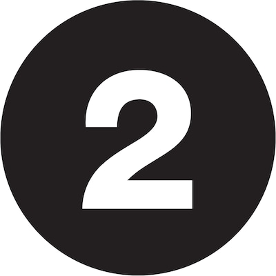 3" Circle - "2" (Black) Number Labels. Use brightly colored labels to identify shipments, inventory or shelving. Table top dispensers available stock numbers SL9506, SL9512 and SL9518. Wall Mount dispensers available stock numbers LDM250, LDM450, LDM850 and LDM1250. 500 per roll.