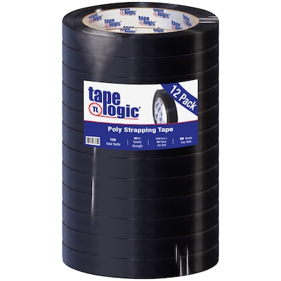 Tape Logic Poly Light Duty Strapping Tape, 0.75" x 60 yds., 3" Core, Black, 12/Carton (T97619712PK)