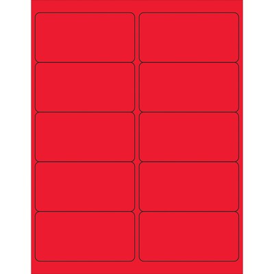 Tape Logic® Removable Rectangle Laser Labels, 4" x 2", Fluorescent Red, 1000/Case (LL410RD)