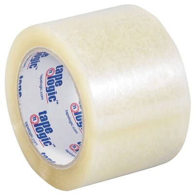 Tape Logic 3" x 55 yds x 3.5 mil thick acrylic adhesive sealing tape in a case of 6 retains its clarity over long periods of time and has strong adhesive grips.