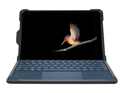 Whether in the office, at the job site or somewhere in between, the Targus SafePort Rugged MAX Case keeps your Microsoft Surface Go 2 and Surface Go protected. From its hardened polycarbonate shell and shock-absorbing materials protect the Surface Go and the Type Cover (not included). The case meets the rigorous MIL-STD-810G standards that protect from sudden drops and accidental slips. And since it also encloses - and locks in - the Type Cover, it helps to prevent accidental detachment while you're on the go. We've designed the case so that it's as light and thin as possible while still maintaining its rugged protection. An integrated stand for landscape viewing and typing positions adds versatility and hassle-free portability. Connect the soft neoprene hand strap and your tablet becomes more accessible and secure than before.