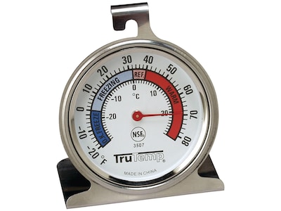 Monitor temperatures in food-storage areas with this Taylor TruTemp freezer and refrigerator thermometer. Made of durable stainless steel, this thermometer withstands cold temperatures as it hangs or stands inside your appliance. The 2.25-inch dial provides easy-to-read safe-temperature-zone indicators with a red pointer to eliminate guesswork. Rely on this Taylor TruTemp freezer and refrigerator thermometer to check that your appliances are cooling properly so that food doesn't spoil and is safe to eat.