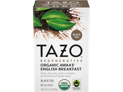 There's black tea. And then there's Tazo Awake English Breakfast regenerative tea. Made from Fair Trade Certified ingredients grown with regenerative agriculture practices, this blend not only tastes bold, it's better for the people who grow it and the land where it's grown. The take on this breakfast-style classic gives you an organic black tea that's smooth, strong, and oh-so-robust. Traditional? It's anything but.
