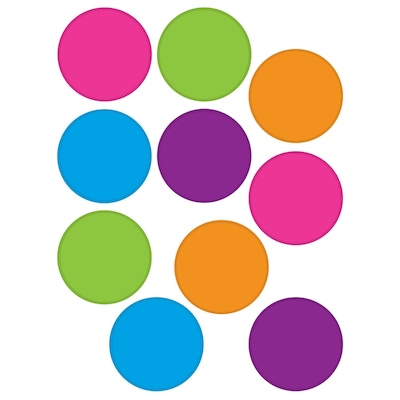 Teacher Created Resources Bright circles accent measures 6" and is used to decorate classroom windows and doors, label bins/desks or bulletin boards, sold as 30 per pack.