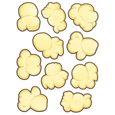 Teacher Created Resources Popcorn accent measuring 6" comes in 3 each of 10 shapes and is used to decorate classroom windows and doors, label bins/desks or bulletin boards, sold as 30 per pack.