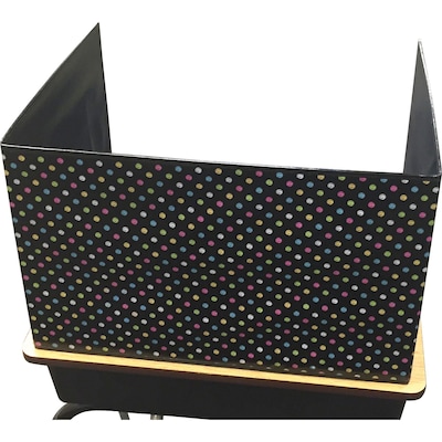 This durable designer Classroom Privacy Screen will brighten up any classroom and help students keep a positive attitude, even during test time! Ideal for reading, testing, or working on individual projects. The non-porous surface is easy to clean and can be wiped-down or sprayed with disinfectant to help prevent the spread of germs. Center Panel: 22"W x 16"H, Side Panels: 14"W x 16"H, Assembled: 22"W x 16"H x 14"D.
