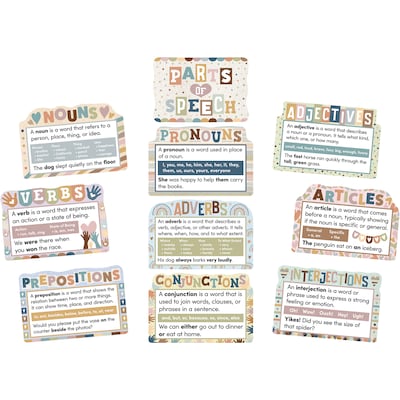 - This comprehensive set includes 10 pieces, with a "Parts of Speech" title piece and 9 individual posters to reinforce grammar skills with confidence.