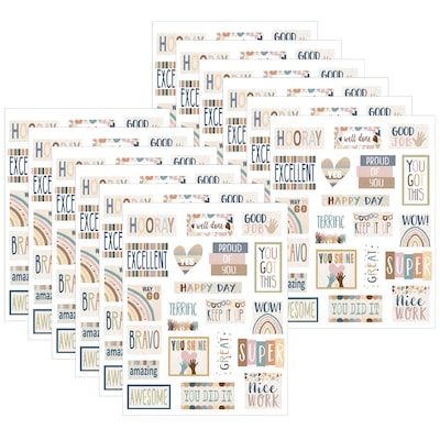 These cute, colorful stickers featuring inspirational messages help spotlight good behavior, boost motivation, and make good habits stick! Great on homework, incentive charts, and more. These stickers are nontoxic, acid-free and photo-safe. Stickers vary from about 1-3/4" to 1/2". Each pack includes 120 stickers in 20 designs. Sold as 12 packs for a total of 1440 stickers.