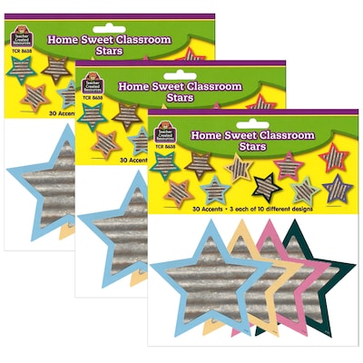 Teacher Created Resources Home Sweet Classroom Stars Accents, 30 Per Pack, 3 Packs (TCR8638-3)