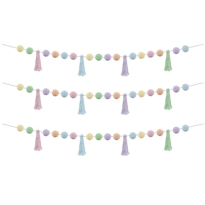 Teacher Created Resources Pom-Poms and Tassels Garland, 5" x 5', Pastel Pop, 3 Packs/Bundle (TCR9207-3)