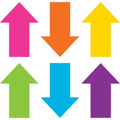 Help students quickly identify where to sit or stand. These vinyl floor markers stay on strong but can be removed easily and used again and again. Great for social distancing! The markers attach firmly to smooth, untextured floors and other surfaces. Each marker measures approximately 8". Each pack includes 6 arrows in 6 colors.