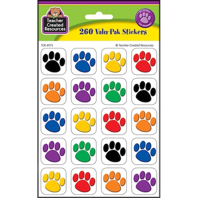 Teacher Created Resources® Stickers, Colorful Paw Prints, 260/Pack (TCR4973)