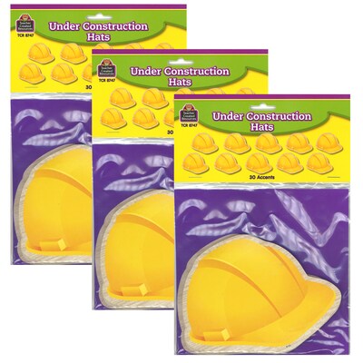 Teacher Created Resources Under Construction Hard Hats Accents, 30 Per Pack, 3 Packs (TCR8747-3)