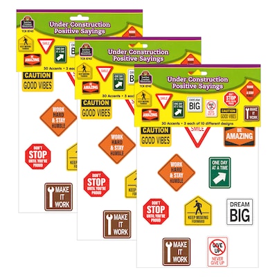 Teacher Created Resources Under Construction Positive Sayings Accents, 30 Per Pack, 3 Packs (TCR8742-3)