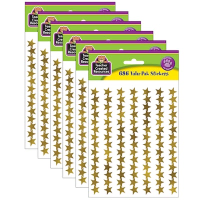 Teacher Created Resources Valu-Pak Gold Foil Star Stickers, Gold, 686/Pack, 6 Packs (TCR5799-6)