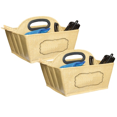 Teacher Created Resources Vinyl Storage Caddy, 9" x 9" x 6", Burlap Design, Pack of 2 (TCR20836-2)