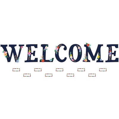 - Features: 7 title pieces spelling out "Welcome", 48 multi-purpose, blank label accents, and bulletin board guide with set-up and activity suggestions.