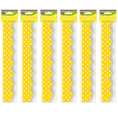 Teacher Created Resources Yellow Mini Polka Dots Border Trim, 35 Feet Per Pack, 6 Packs (TCR4668-6)