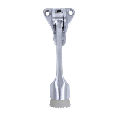 Tell Manufacturing's 4-1/8 Inch Kickdown Door Stop can be lowered from mounted position to hold door open. Triangle base and Satin Chrome finish.