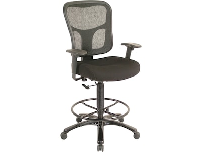 Enjoy the built-in lumbar support, breathable mesh back panel, and height-adjustable arms and back of this office stool while concentrating on tasks. The seat adjusts from 24.4 to 33.5 inches high to suit various body types, and the height-adjustable foot ring provides extra support for feet and legs. This Tempur-Pedic drafting stool rolls smoothly across carpet via the sturdy dual-wheel casters for impressive mobility.